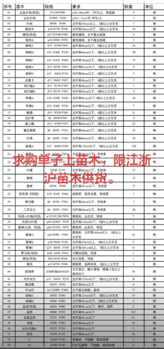 求购单子上苗木,江浙沪地区的苗商可以联系我