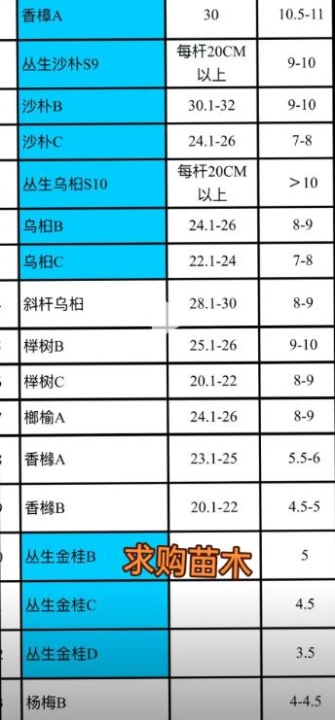 求购清单苗木,工地马上开工...
