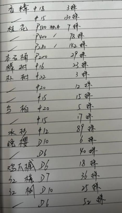 求购如下苗木: