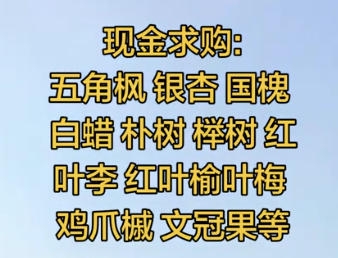 紧急求购:15公分元宝枫/五角枫,10公分红叶碧桃,18公分速生白蜡,有货源...